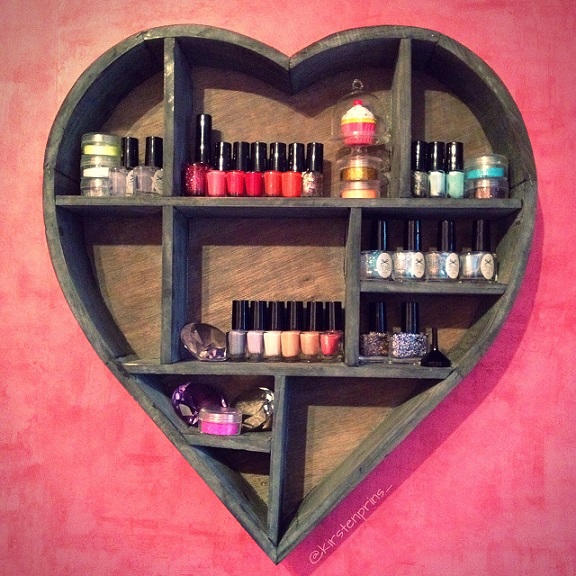 Na alle deurtjes van de kalender geopend te hebben moest ik nog een plekje gaan bedenken voor al mijn nieuwe lakjes..het duurde even, maar ik heb een leuk plekje gevonden aan mijn muur! Hier staan ze op dit moment, ik vind het er wel leuk en overzichtelijk uit zien al zeg ik het zelf 🙂