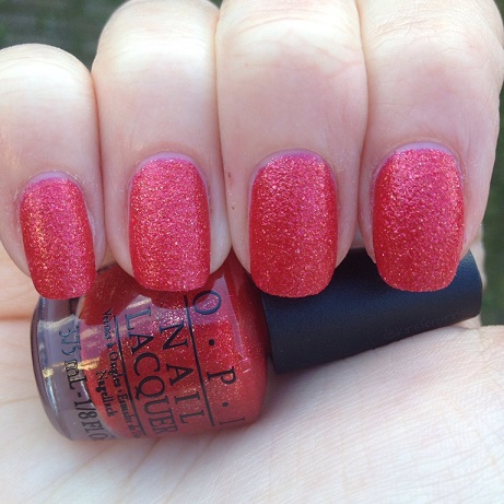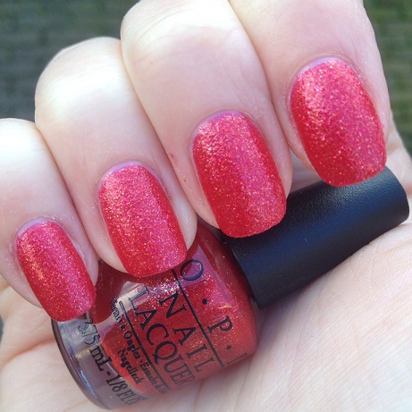 is een liquid sand nagellak. Na één laagje dekt deze nagellak al goed, maar als je echt van diep rood houdt dan zou ik twee laagjes aanbrengen (op de foto’s zie je ook twee laagjes). Bij slechts één laag is de kleur lichter, een beetje oranje/rood. Een bijkomend voordeel van liquid sand nagellak is dat het snel opdroogt. Als je een ongeduldig type bent , dan is liquid sand nagellak dus perfect voor je! 😉