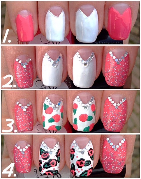 Dit zijn de stappen waarin ik de floral nail art gemaakt heb: