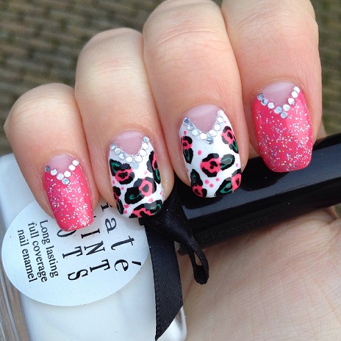 Vandaag heb ik weer een leuke nail art voor jullie met rozen en glitters. Ik heb al een keer eerder nail art met rozen gemaakt + uitleg erbij, maar voor de duidelijkheid zal ik nogmaals alles stap voor stap uitleggen.