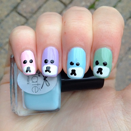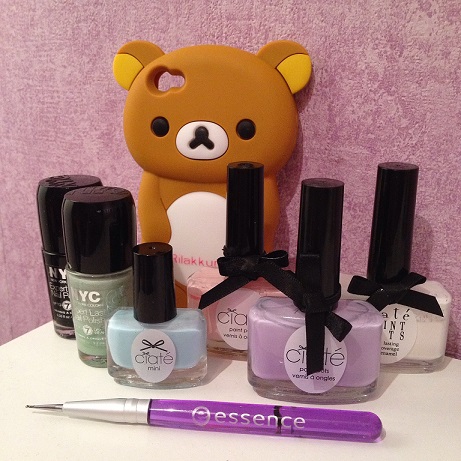 Door dit leuke telefoonhoesje kwam ik op het idee om een lieve Rilakkuma nail art te maken. Het is een hele simpele nail art en je bent snel klaar. Ik heb pastelkleuren gebruikt, maar je kan natuurlijk ook bruin gebruiken voor beertjes die wat meer op het origineel lijken 🙂