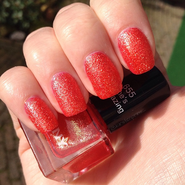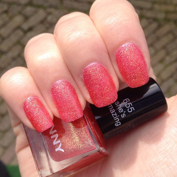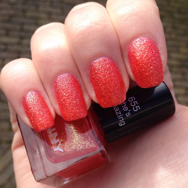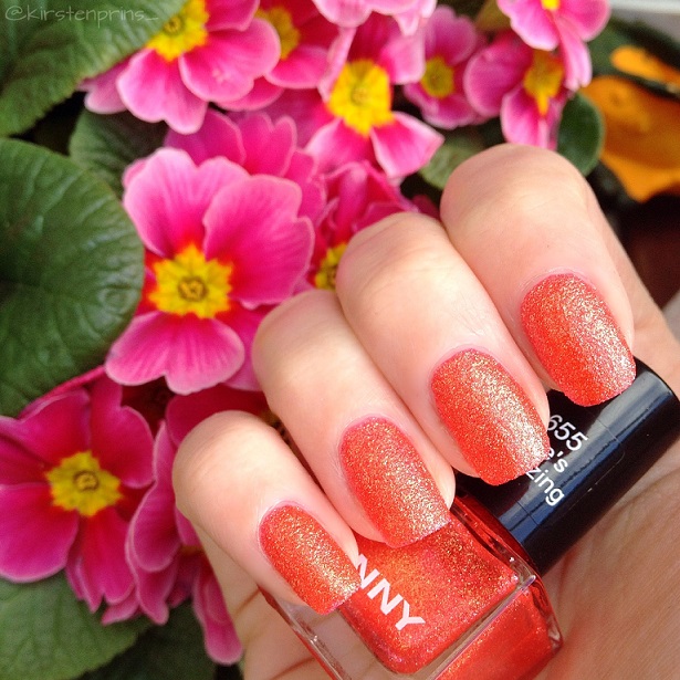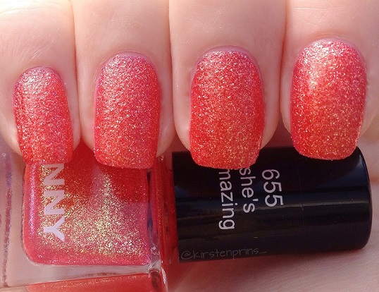 In mijn vorige blogpost zagen jullie deze nagellak al voorbij komen, en ik had beloofd om hem nog een keertje te laten zien op mijn nagels. Hier is hij dan! She’s Amazing is een mooie oranje liquid sand nagellak met roze en gouden glinsters uit de Desert Glam collectie van het Duitse merk ANNY. Het is een klein schattig flesje met een inhoud van 6 ml en is te koop bij de Douglas voor €4,95. ANNY verkoopt ook lakjes in normaal formaat (15 ml) voor €9,95.
