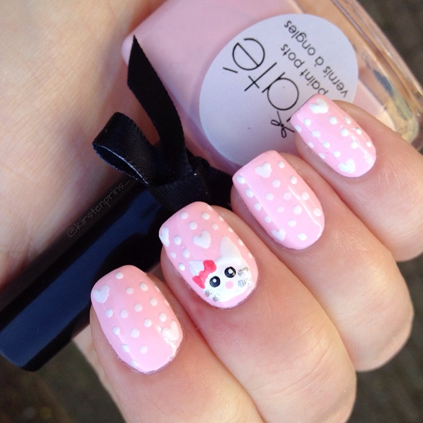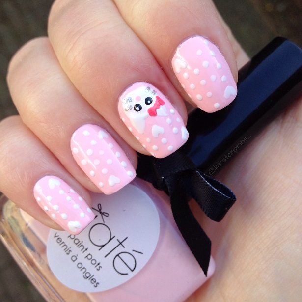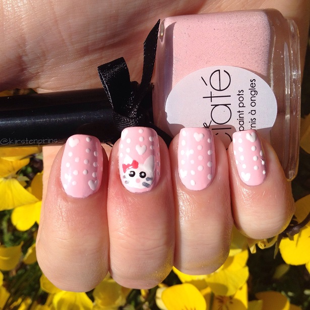 Vandaag heb ik weer een nieuwe nail art design voor jullie, geïnspireerd op de ”Cute Marie the Cat Nail Art” van Meliney (voor haar YouTube tutorial klik hier). Het is een leuke meisjesachtige nail art die niet moeilijk is om na te maken.