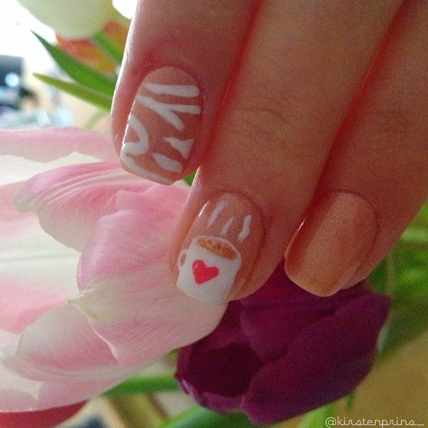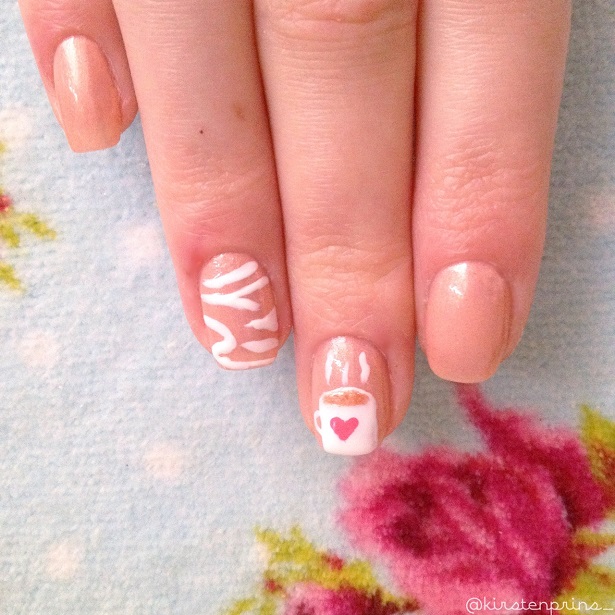 Het heeft eventjes geduurd maar ik heb weer een nieuwe nail art design gemaakt. Natuurlijk waren mijn nagels nog verder gescheurd dan eerst en moest ik ze nog korter vijlen. Maar ze zijn alweer een beetje gegroeid (gelukkig!) en ik kan er nu weer wat leuks op maken hihi. Vandaag heb ik een simpele hot chocolate nail art gemaakt. Wie houdt er nou niet van een lekkere grote mok met warme chocolademelk? Ik wel, zelfs in de zomer! 😀