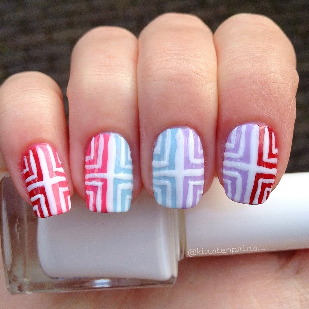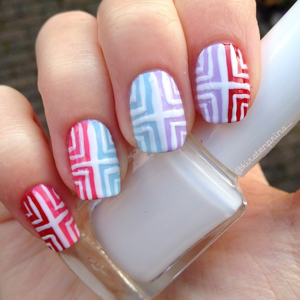 Vandaag heb ik weer een nail art design voor jullie met vrolijke kleurtjes. Ik wist eerst niet zo goed wat de titel van deze blogpost moest worden, want waar lijkt deze nail art eigenlijk op? Vierkantjes of strepen? Ergens vond ik het wel een beetje lijken op een doolhof met al die lijnen en paden er tussen, dus het moest iets worden met het woordje ‘maze’. Ineens kreeg ik een creatief momentje en heb ik er a-maze-ing van gemaakt, een mix van amazing en maze (wow) 😀 Haha, terug naar de nail art van vandaag!