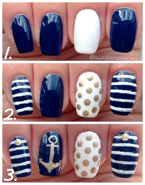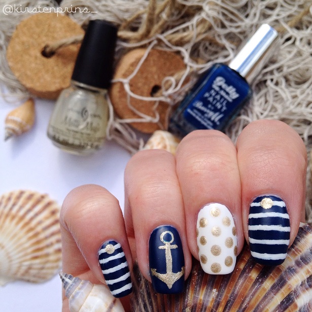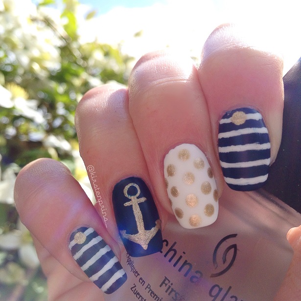 Gisteren heb ik weer een nail art design gemaakt met een nautical thema, en die ga ik vandaag aan jullie laten zien. Ik heb zoals altijd weer stap voor stap foto’s gemaakt, plus extra foto’s van het ankertje op de ringvingers omdat deze lastig kan zijn om na te maken. Kijken jullie mee?