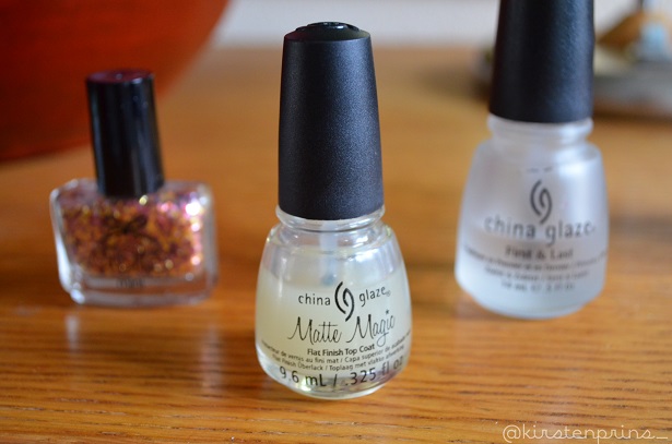 Op een aantal foto’s heb ik deze matte nagellak gebruikt van China Glaze: