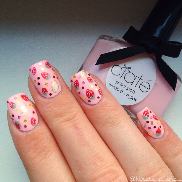 Voor vandaag heb ik een nail art design gemaakt met het mooie roze kleurtje ‘Strawberry Milkshake‘ van Ciaté. Van de naam alleen al krijg ik trek in een lekkere, ijskoude aardbeien milkshake! Vandaar ook dit design met schattige kleine aardbeitjes en sequin glitters erop. Kijken jullie mee?