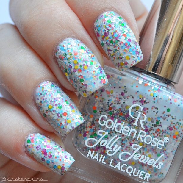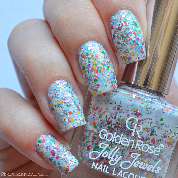 Ik heb deze nagellak 2 dagen gedragen, daarna moest ik werken en moest mijn nagellak er helaas weer af . Ik merkte wel dat de nagellak na 1 dag dragen al een beetje begon te chippen in de hoekjes. Dat komt waarschijnlijk omdat ik geen top coat heb gebruikt, maar ik stoorde me er niet echt aan. De nagellak is namelijk al zo kleurrijk en druk dat het nauwelijks opvalt als er een hoekje gechipt is. Ik vind het een super lakje (al is het verwijderen van glitter nagellak wat minder leuk werk haha), en ik ga zeker nog andere nagellakjes kopen van Golden Rose!
