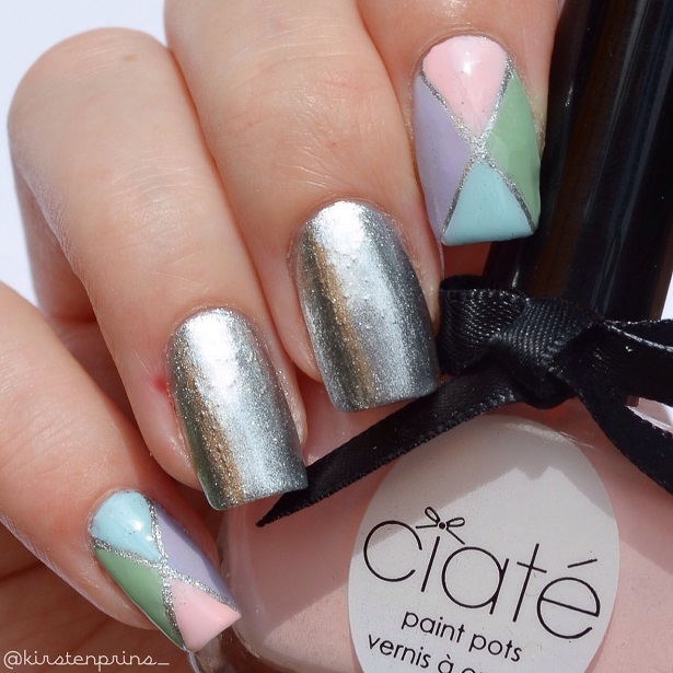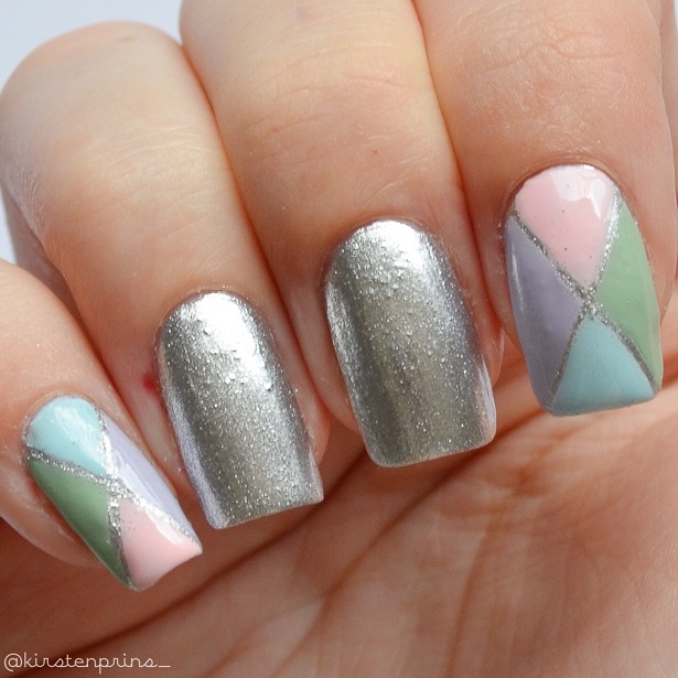 In mijn vorige blogpost heb ik een swatch laten zien van het zilveren lakje ‘Fit For A Queen’ van het merk Ciaté. Met deze nagellak heb ik ook nog een simpel nail art design gemaakt met behulp van wat striping tape en vier verschillende pastel lakjes. Kijken jullie mee?