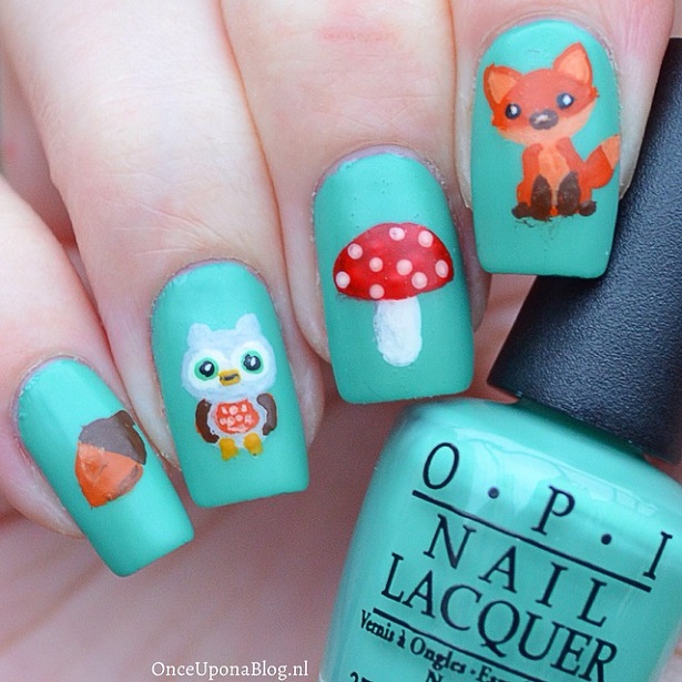 Vandaag laat ik jullie een schattig herfst design zien. Ik heb ook deze keer vooral met acrylverf gewerkt, maar de groene achtergrond is wel gewoon nagellak (My Dogsled is a Hybrid – OPI). Kijken jullie mee?
