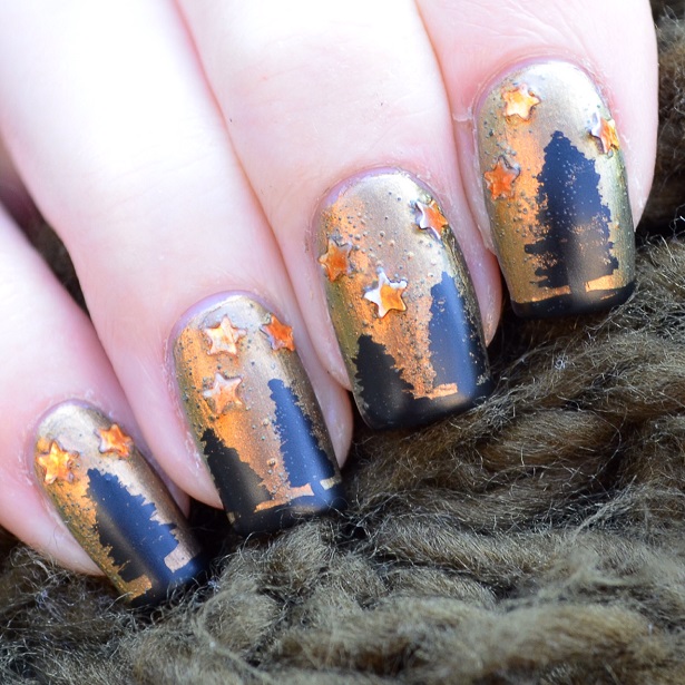 * Add a few stars on your nails for a special effect. I used glitter stars but you can also paint them on your nails.