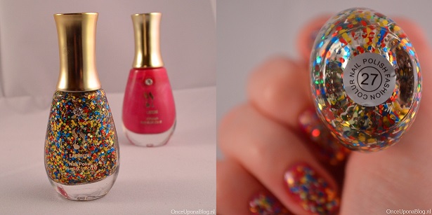 You can buy Laushine nail polishes HERE. The multi coloured glitter polish costs €2,00 (Sale!) and the deep pink polish costs €3,50.