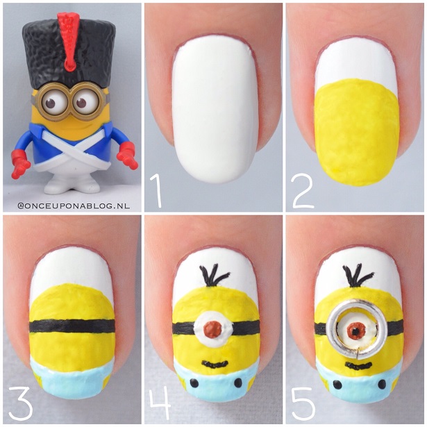 Here’s a step by step pictorial for the minion accent nail. If you would like to see a video tutorial of this mani you can click on my next blog post 😉