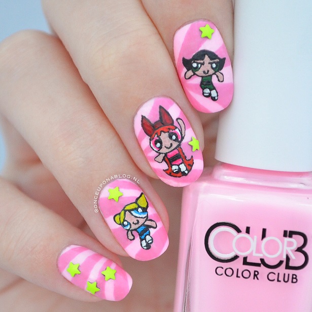 I thought I had already posted an article about this nail art design on my blog a long time ago…but I didn’t. Oops! I still want to share this design with you guys, so here it is! Let’s tak a closer look at my Powerpuff Girl nails!